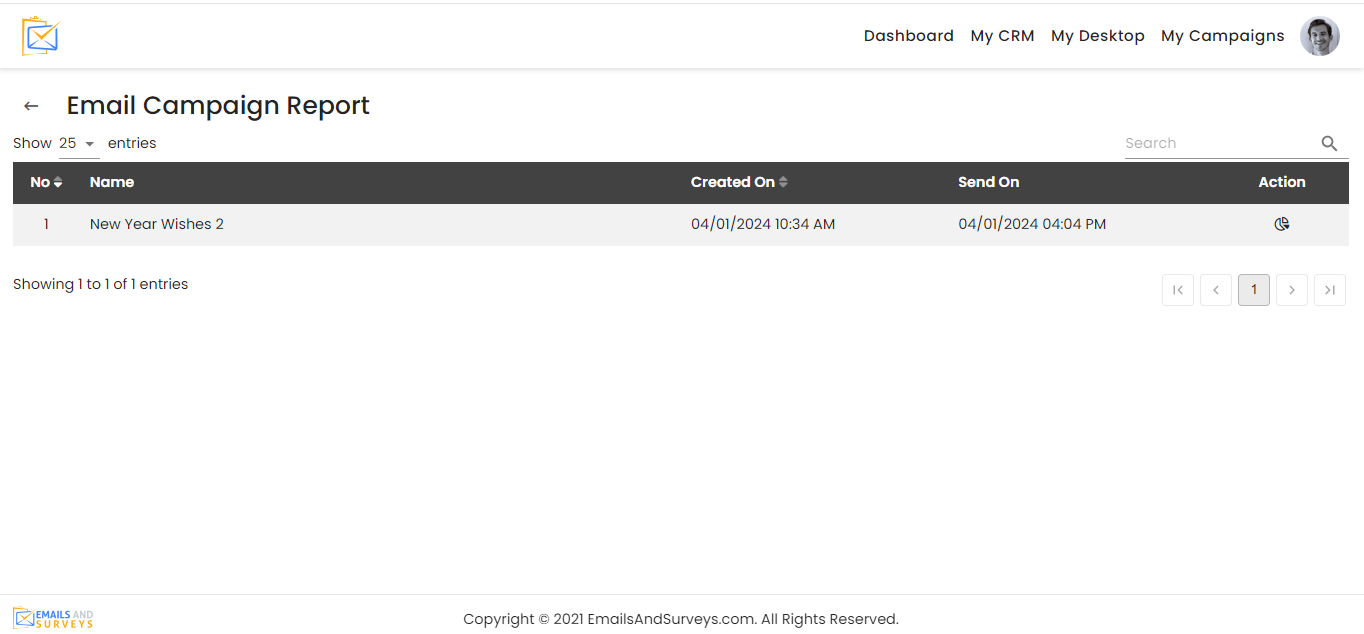 You will see a separate report for every time you campaign was run. Click the Pie Icon on the right side.