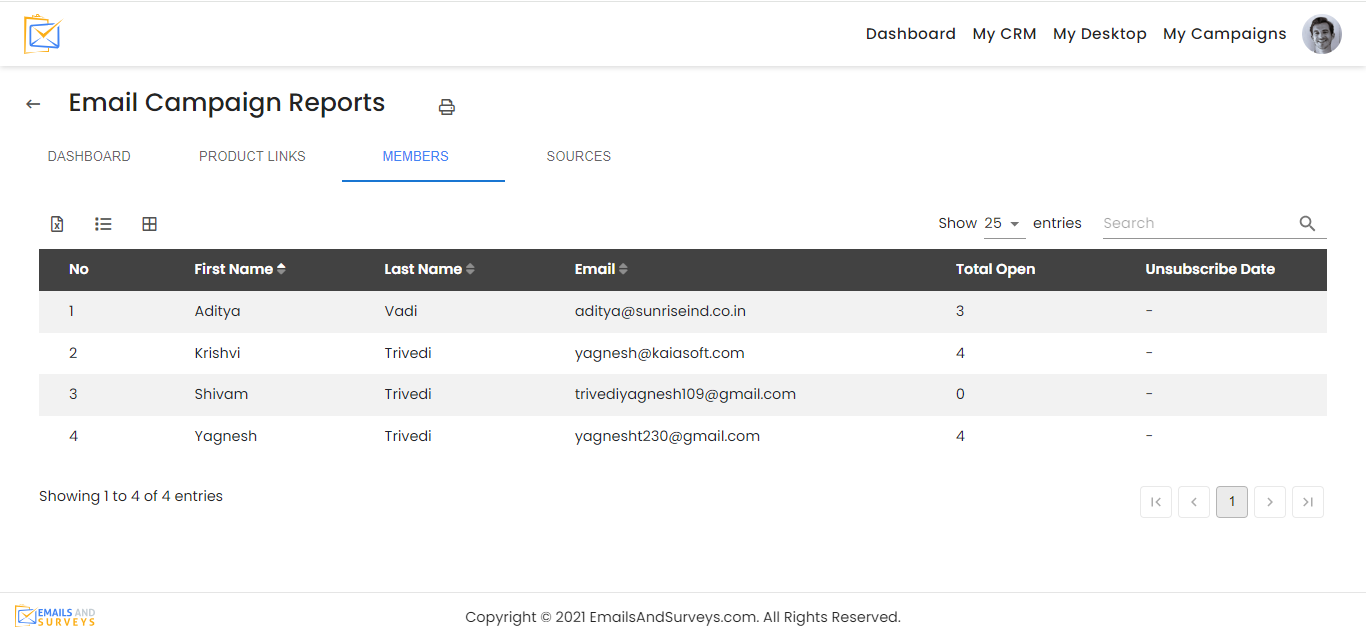 The member sub report display your contacts activity in the Email Campaign.
